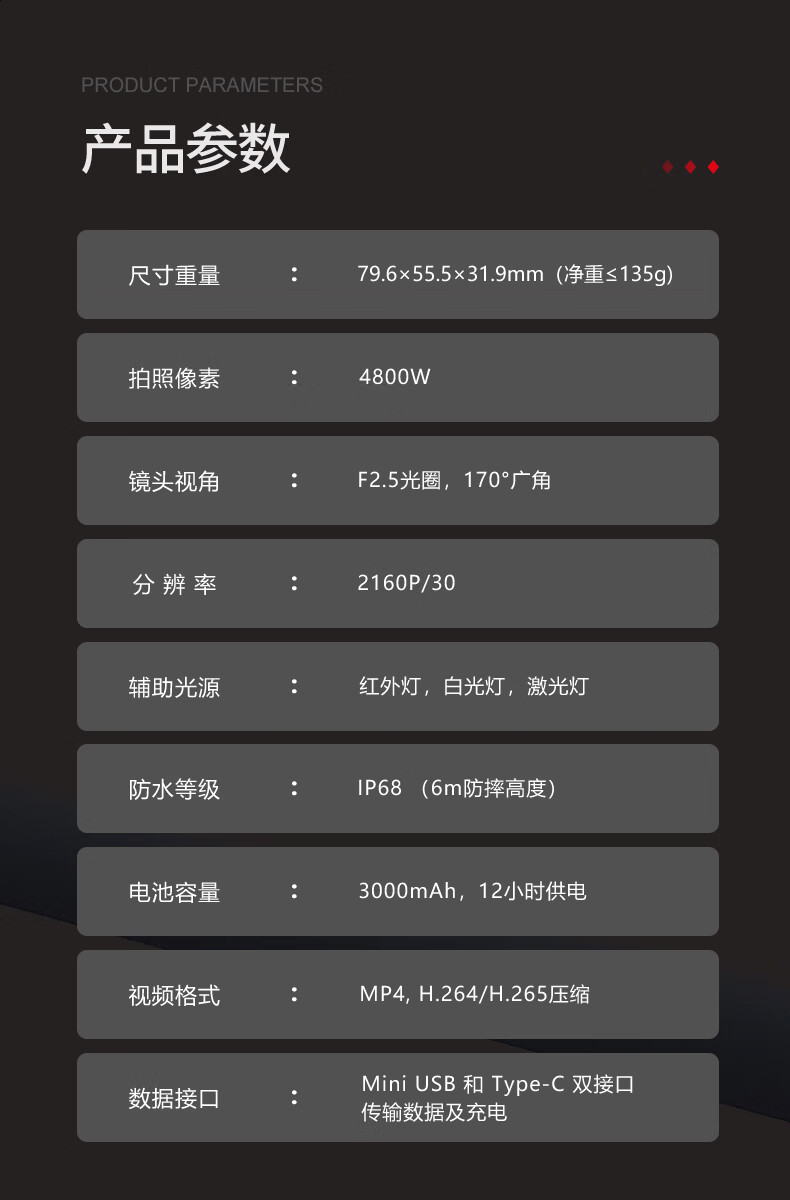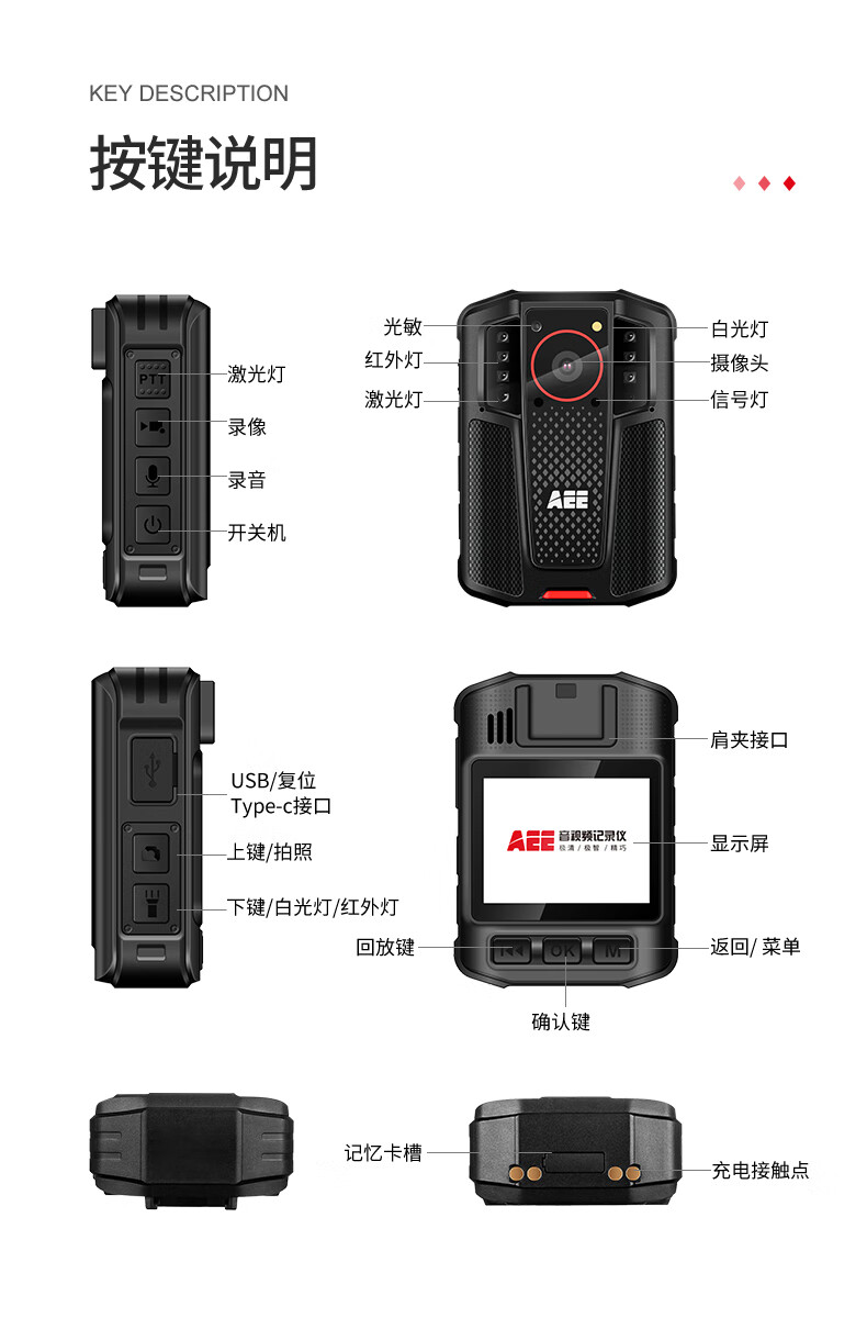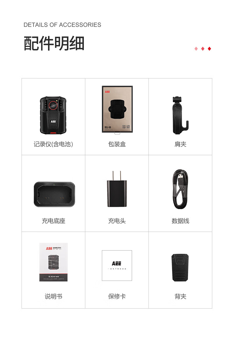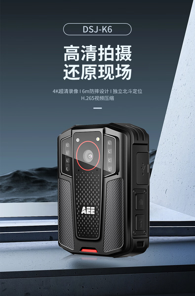 爱意/AEE DSJ-K6 通用无线电通信设备 AEE执法记录仪DSJ-K6 4K高清摄像4800W拍照像素12小时续航便携随身 灰黑色 64