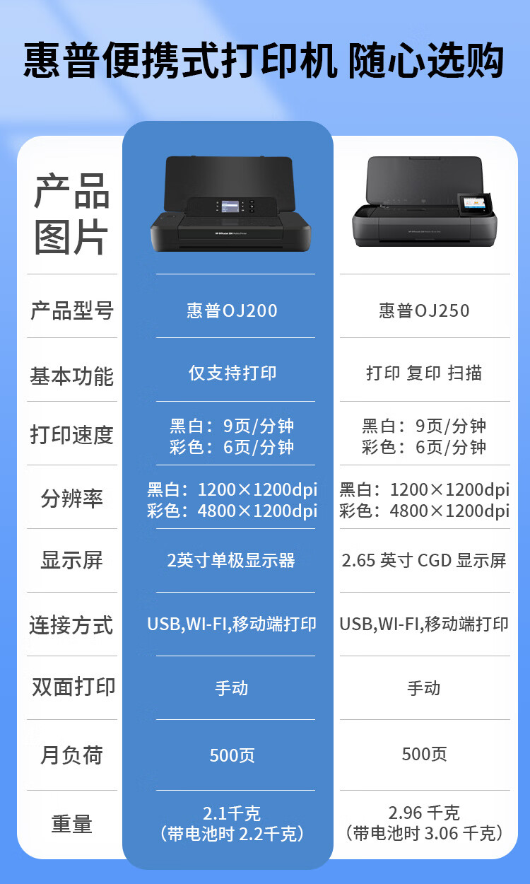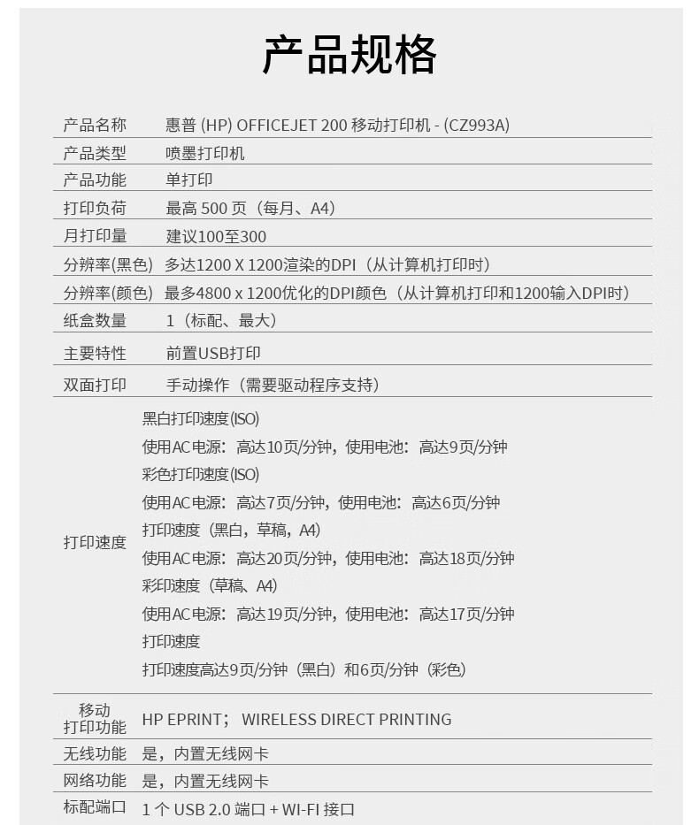 惠普/HP OJ200 A4 彩色打印机 惠普OJ200便携式彩色喷墨打印机