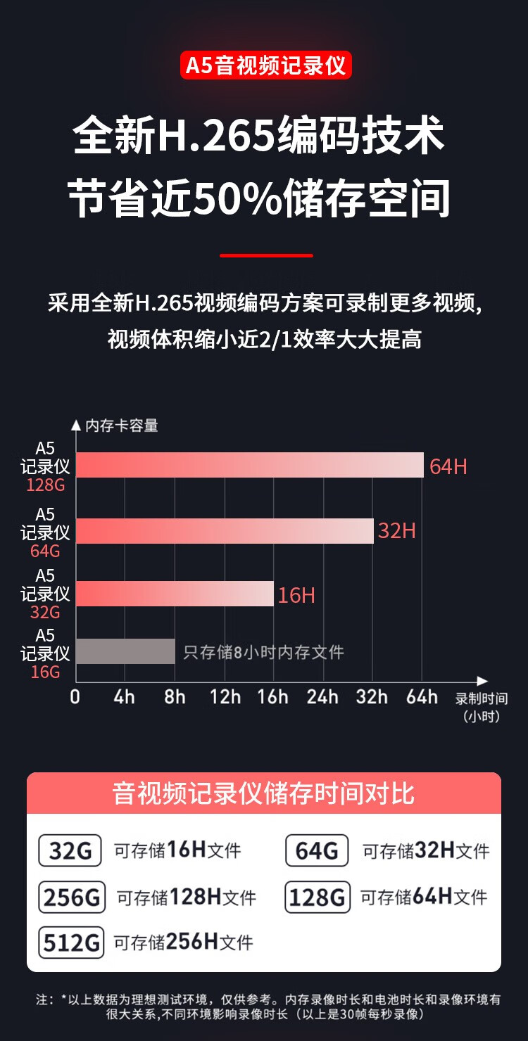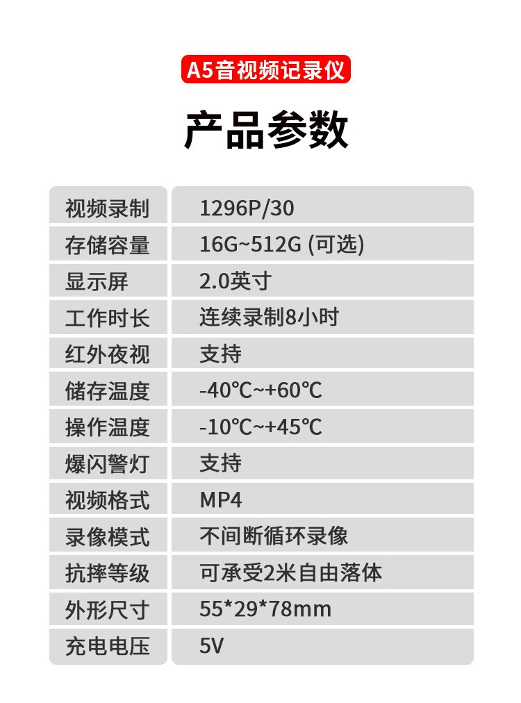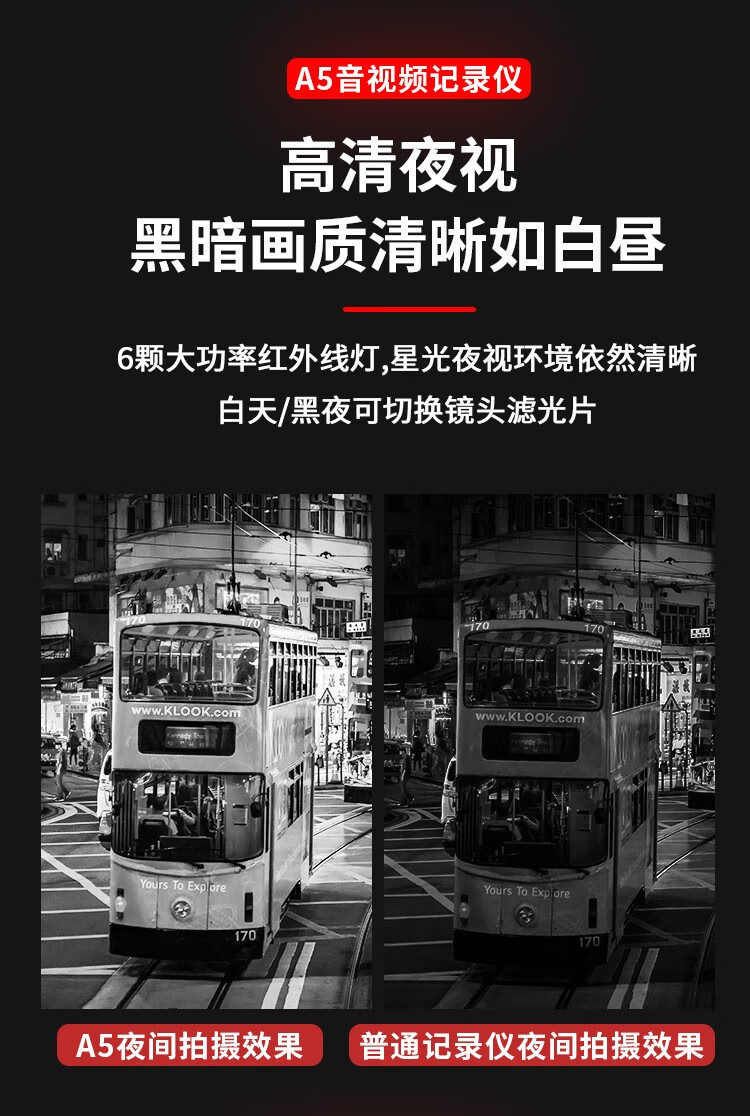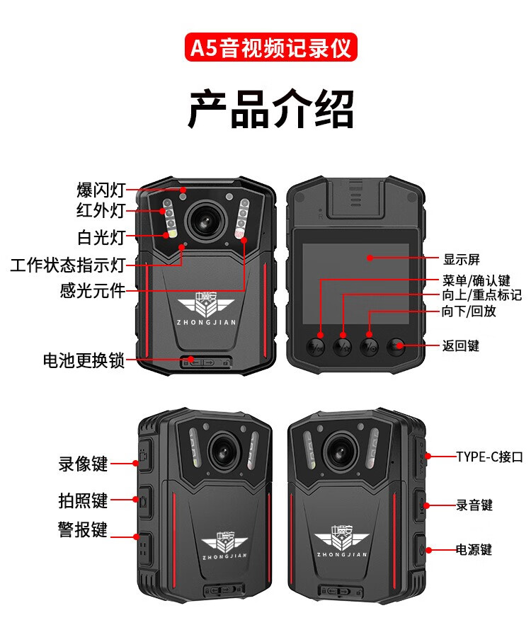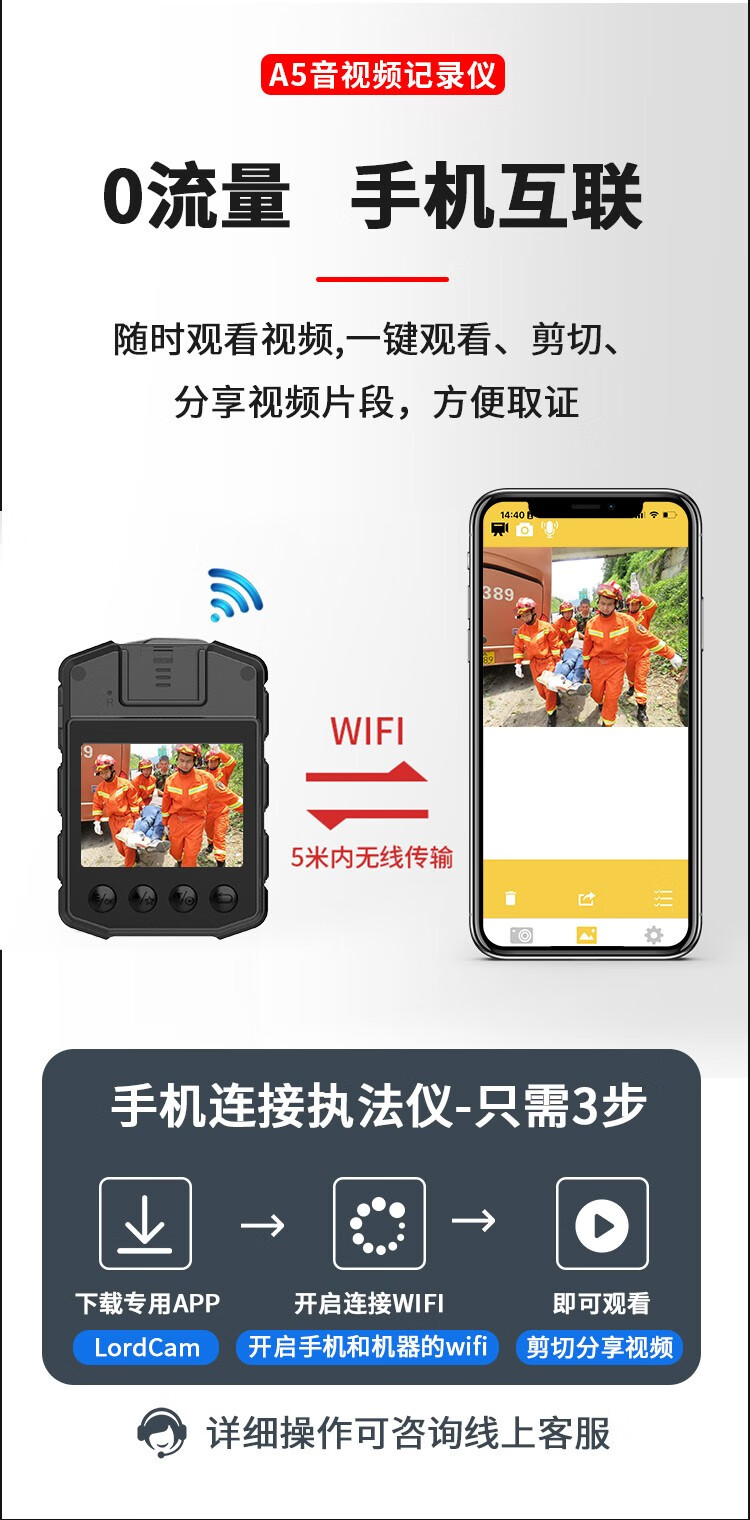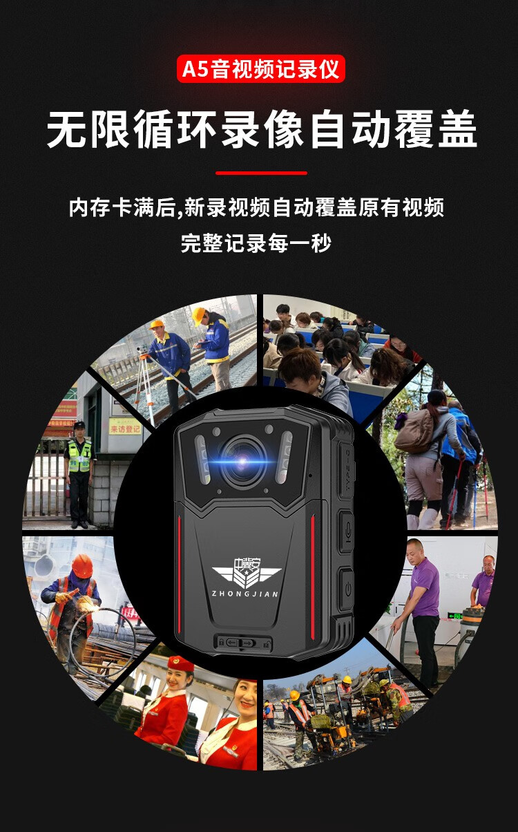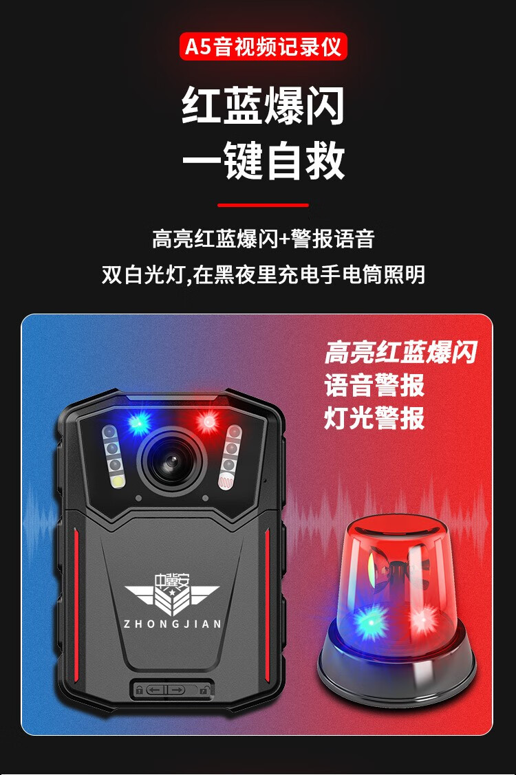 中冀安 DSJ-A5 通用无线电通信设备 中冀安执法记录仪DSJ-A5循环录像1440P红蓝爆闪5800W像素wifi手机互联 64GB